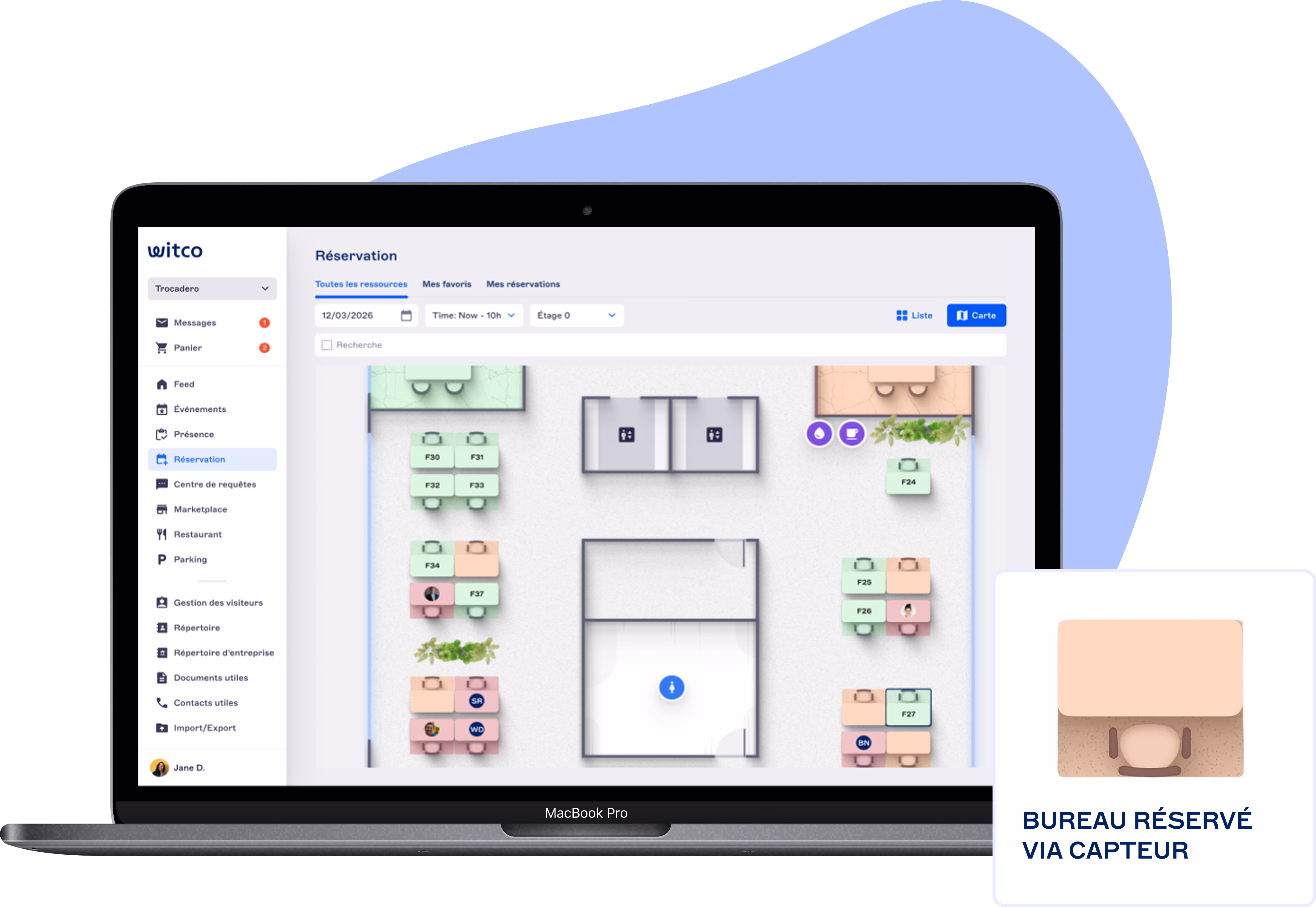 Lorsqu'un collaborateur libère un bureau, le capteur détecte ce changement et met automatiquement à jour le statut dans Witco pour l'afficher comme disponible. Cette synchronisation en temps réel garantit que les informations de disponibilité des espaces de travail sont toujours exactes et à jour.